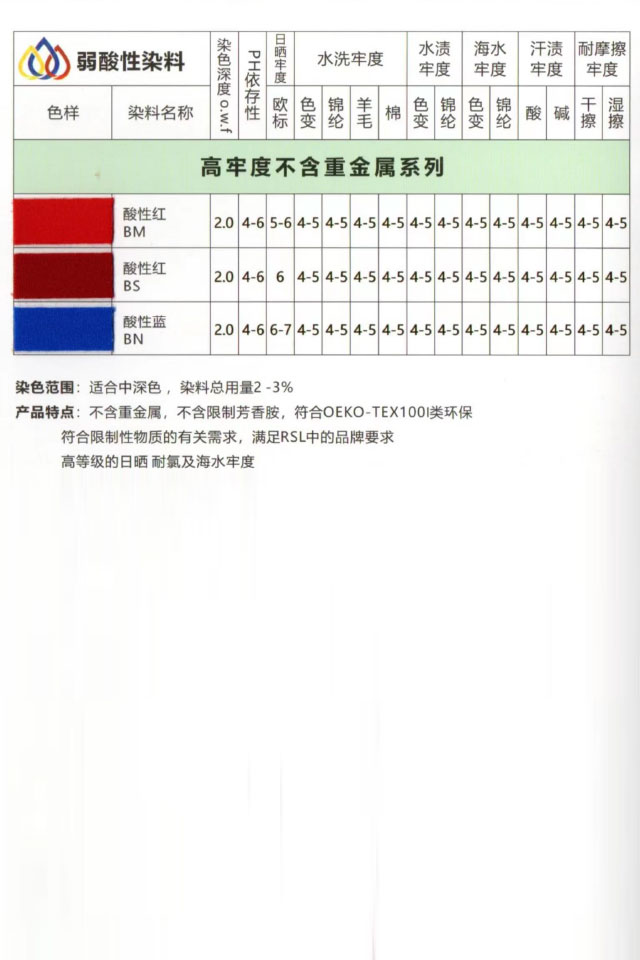 廈門市億染化工科技有限公司是一家集研發(fā)、生產、銷售一體的綜合型企業(yè)。公司主要經營:酸性染料、金屬絡合染料、高牢度分散染料及印染助劑。公司信守“以誠信贏合作、以質量贏市場、以創(chuàng)新贏發(fā)展、以服務贏生存”的企業(yè)精神服務于廣大客戶,多年以來建立了良好的市場口碑,市場遍布福建、廣東、浙江、江蘇、山東及東南亞國家,與多家知名企業(yè)建立了長期合作伙伴關系!